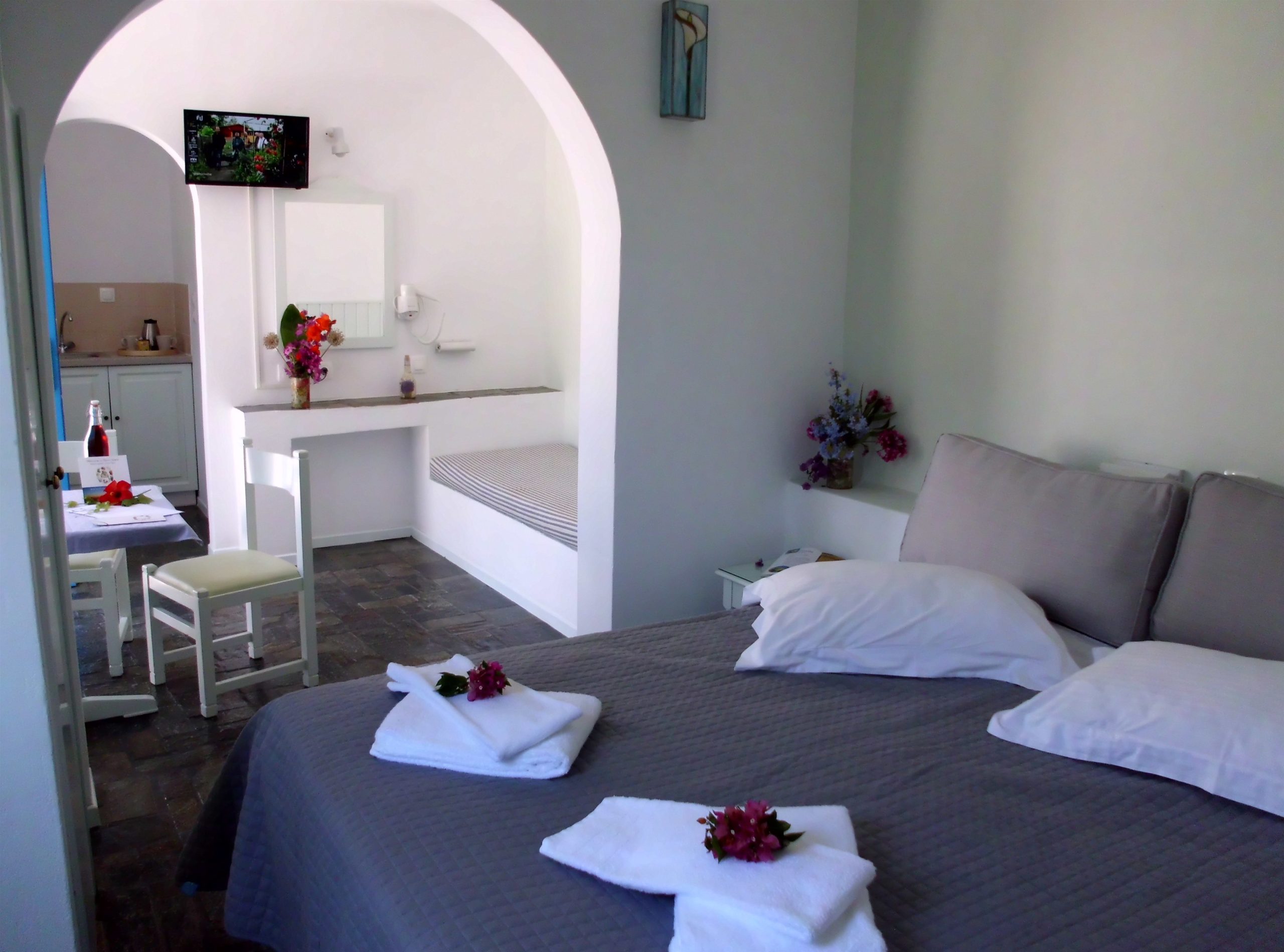 The Junior Suites for 2 include private WC/Shower and verandah or balcony, features a living-bedroom, fridge, Safety box, A/C, Wi-Fi free of charge